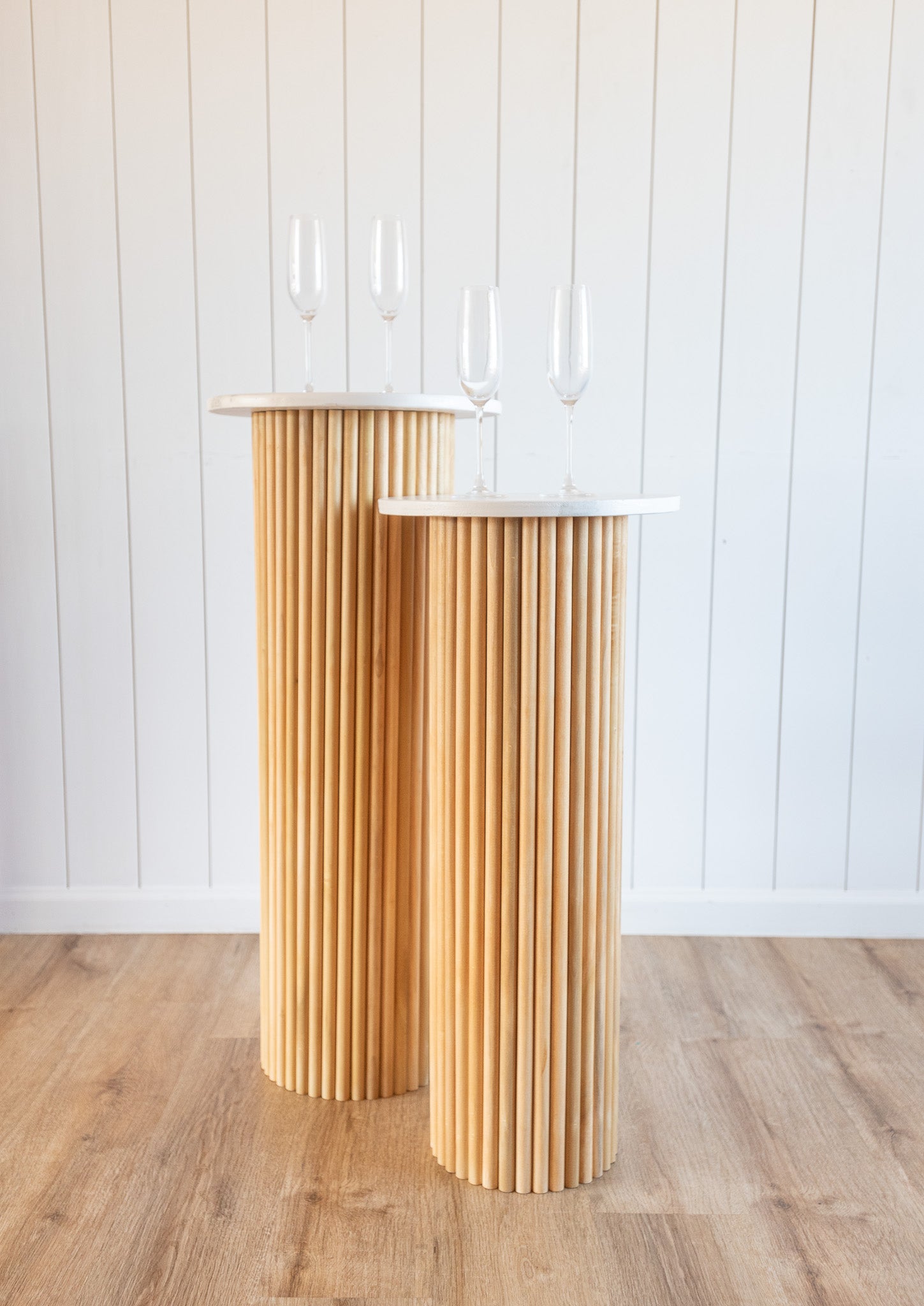 Anything fluted has become super popular lately! So upgrade your event by adding these two fluted pedestals to the rest of your decor! You can easily pair these with backdrops and carts in our inventory. They are the perfect solution for displaying florals, a cake or drinks. Pedestals must be rented as a set.