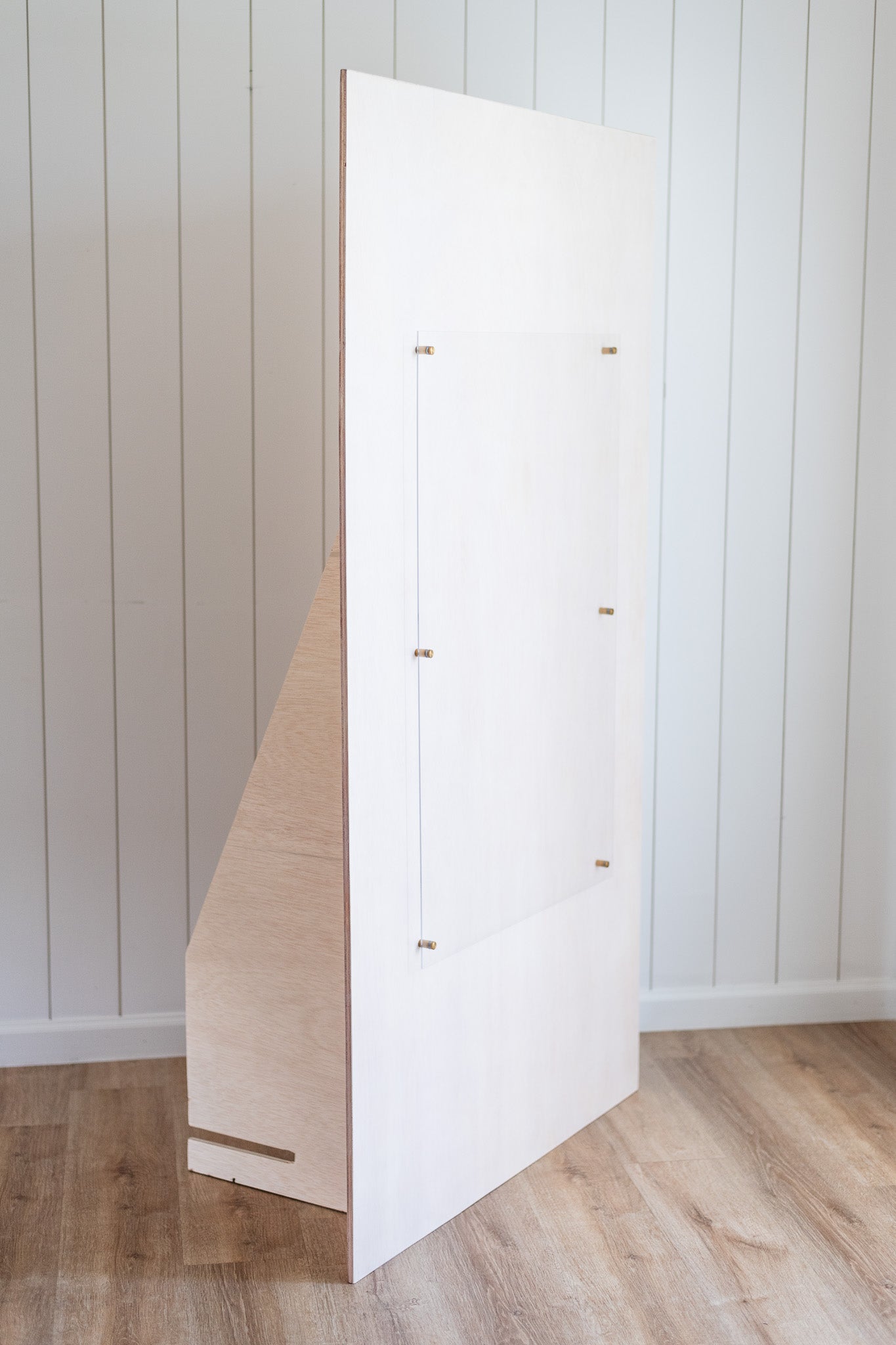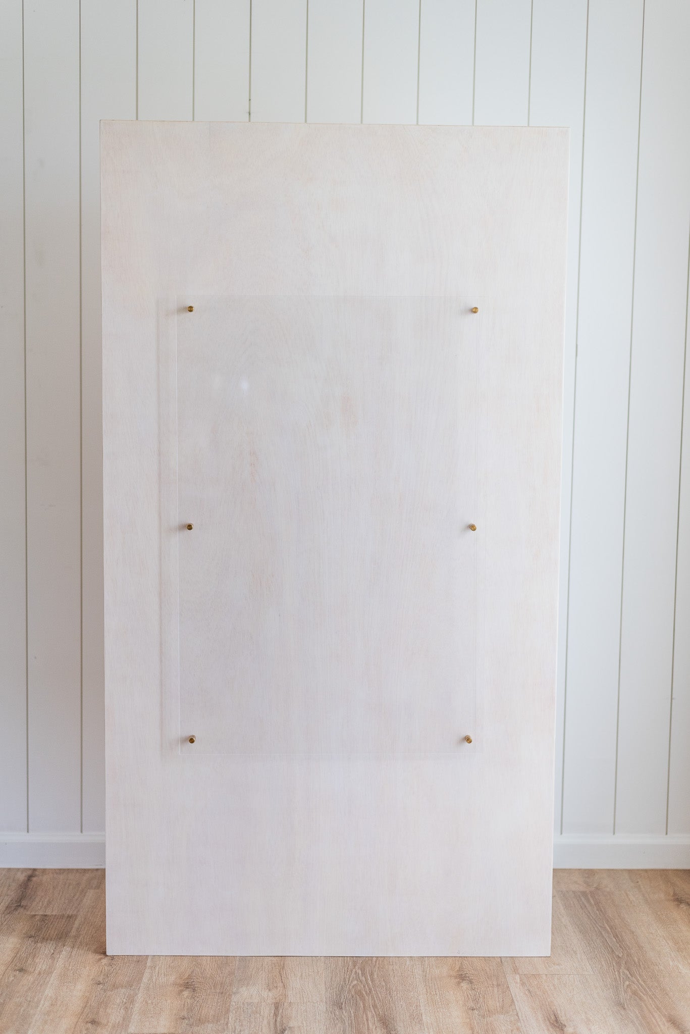 This wooden sign boasts a charming natural appearance, thanks to its light oak stain. The front features a 24"x36" acrylic sheet, supported by brass hardware. Make your event uniquely yours by personalizing it with your chosen words for an additional $30 or rent it as is and add your own decor and vinyl decals on it.
