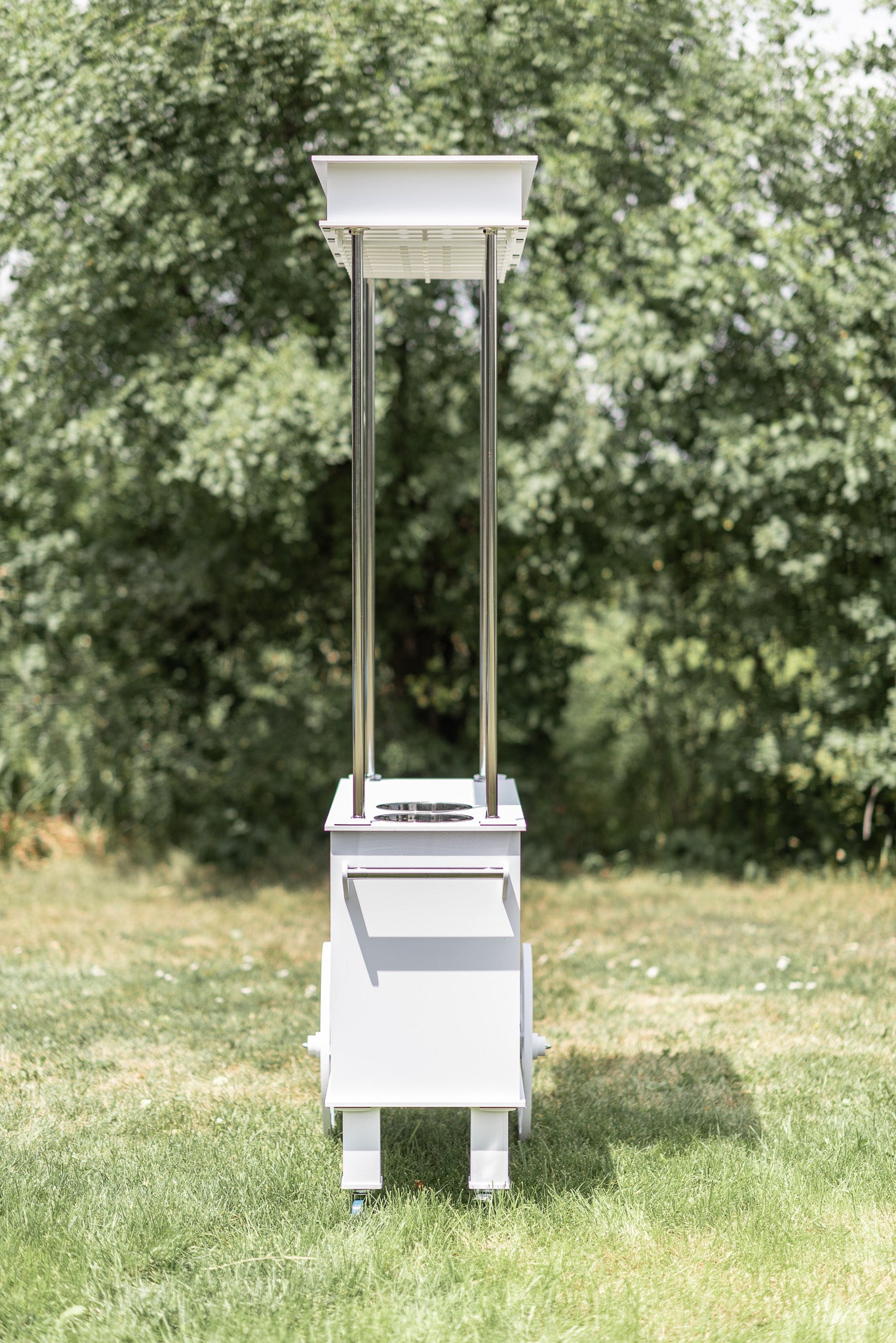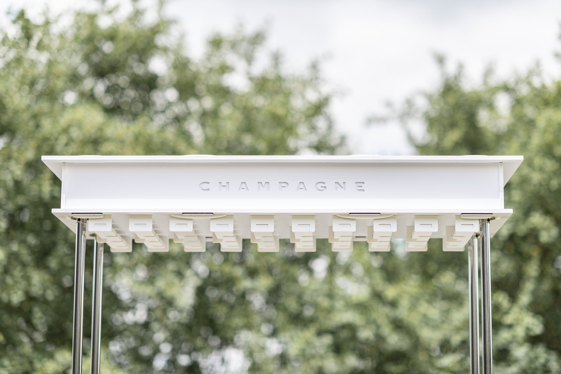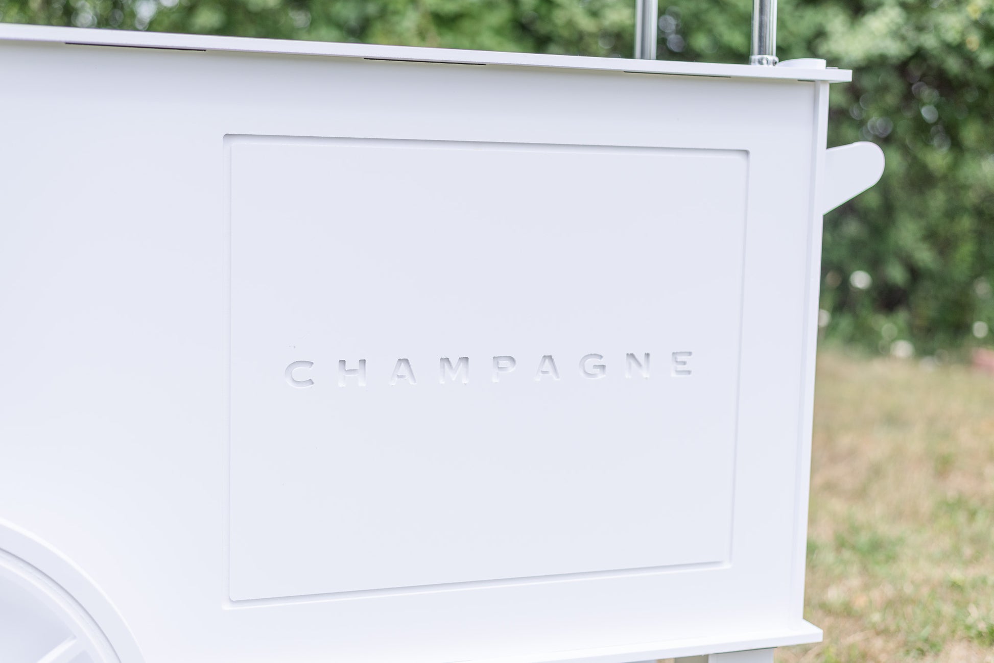This opulent mobile champagne cart is the epitome of sophistication, designed to elevate any event or celebration. It holds 40 champagne flutes and is made out of PVC plastic, making it waterproof and lightweight for transporting. The poles, handle bars and buckets are made out of steel metal. This champagne cart promises to be the centerpiece of every occasion, serving bubbly delights with finesse and charm.